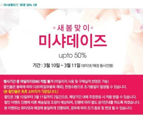 (사진 = 미샤 홈페이지) 미샤 데이즈로 최대 50% 할인을 한다고 합니다 새봄맞이 미샤...