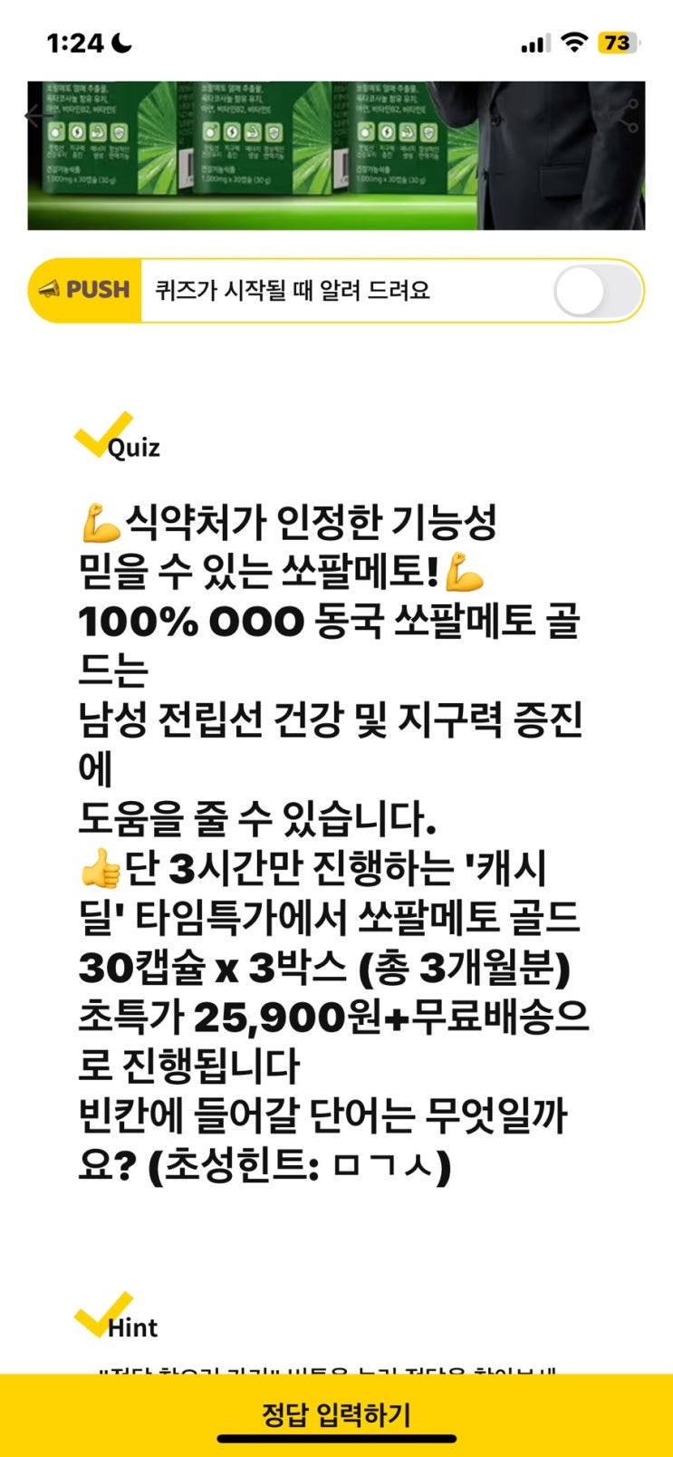 캐시워크정답 _ 식약처가 인정한 기능성 쏘팔메토 100% 000 동국 쏘팔메토 골드 식약처가 인정한 기능성 쏘...
