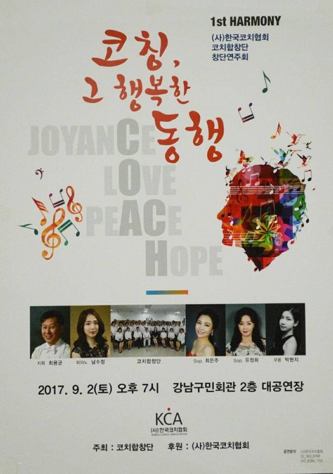 2017년 9월 2일 오후 7시 강남구민회관에서 열린 코치합창단 창단 공연 알토로 참여해 총 10곡의 노래를 불...