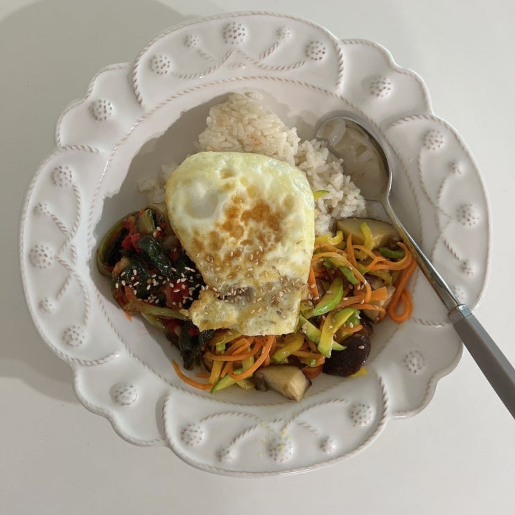 우리집 만만한 메뉴는 비빔밥이다 냉장고를 열어 있는 재료들을 달달 볶으면 비빔밥 재료는 완성이다 얼려...
