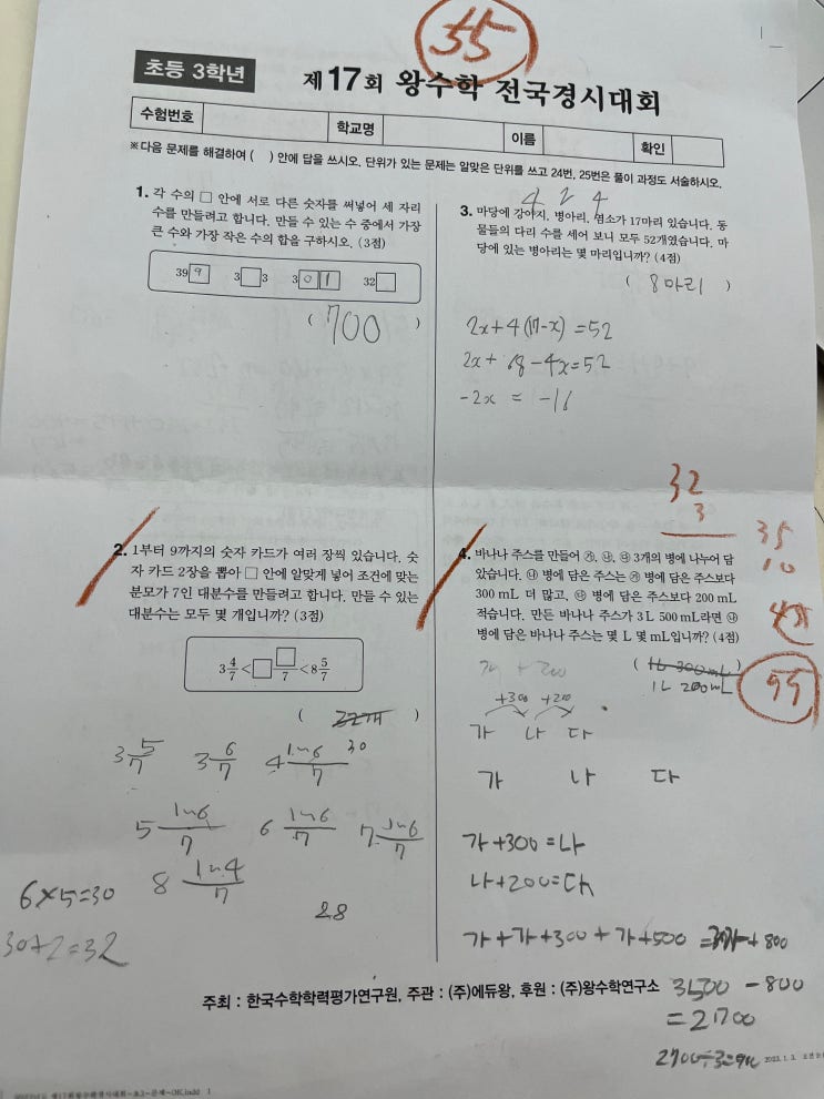 왕수학 전국 경시대회 KMAO 기출문제