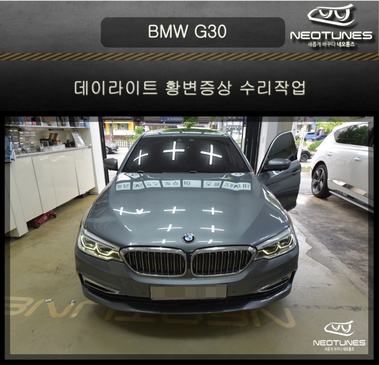 안녕하세요? 네오튠즈 입니다 이번 포스팅은 BMW G30 데이라이트 황변증상 수리작업입니다 G30에 고질...