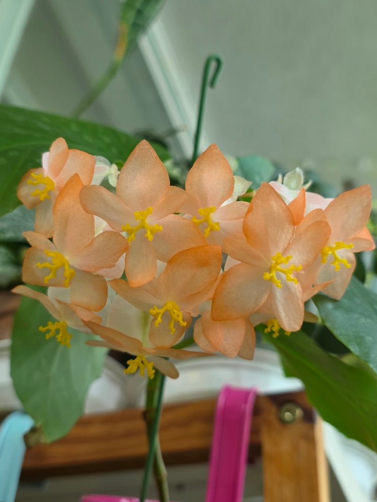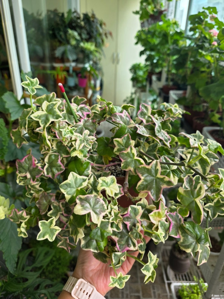 칼라히비스커스 삽목중인 화분에서 작게 두송이가 폈어요 단애님 골핑 파종이 핑크 터치가 진한게 더 이쁘...