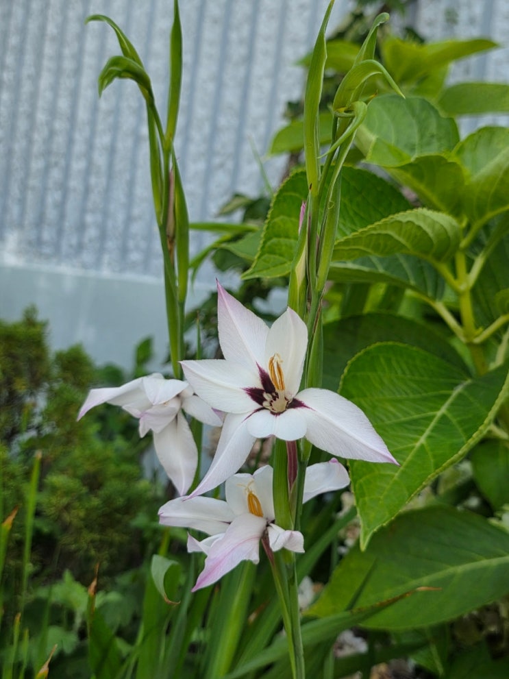 몇일전 꽃대가 올라온걸 봤는데 오늘 출근하니 꽃이 폈네요 향글라디올러스인데 이름은 지워져서 안 보이네...
