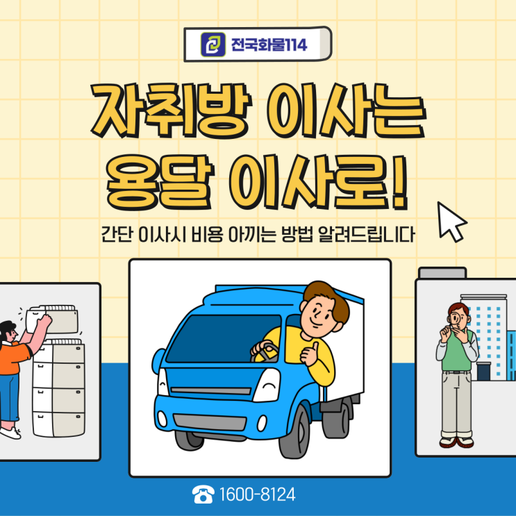 안녕하세요 전국 소형이사 학생이사 전문 용달업체 전국화물114 입니다 자취방 이사는 원룸, 투룸, 오피스...