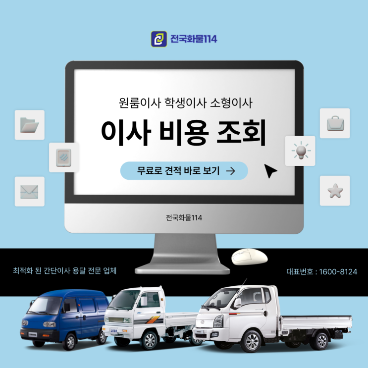 안녕하세요 전국 용달 AI 즉시 배차 시스템의 전국화물114 입니다 원룸 이사를 계획하고 계신가요? 그렇...