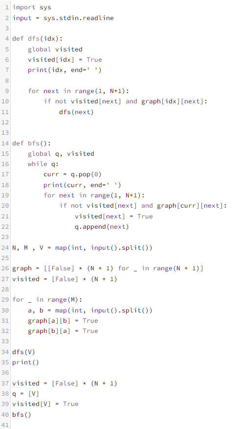 문제 그래프를 DFS로 탐색한 결과와 BFS로 탐색한 결과를 출력하는 프로그램을 작성하시오. 단, 방문...