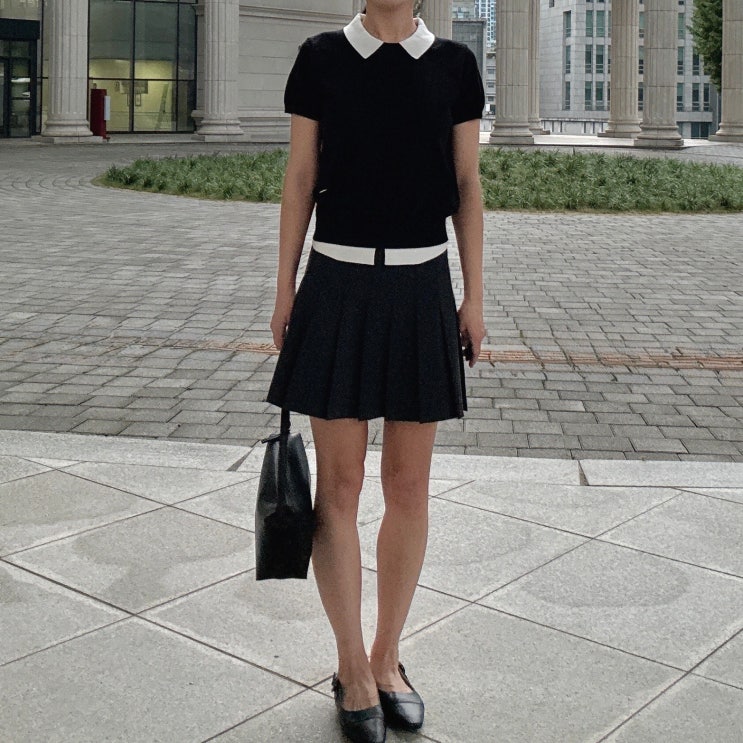 출근룩 하객룩 데이트룩 코디 가능한 2만원대 초가성비 반팔 니트 :: 제너럴아이디어 텐셀 카라 레이어드 하프 풀오버 블랙