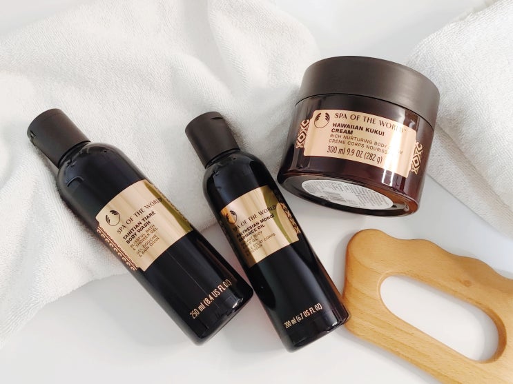 [더바디샵] 스파 오브 더 월드 타히티안 티아레 바디워시 & 하와이안 쿠쿠이 바디크림 & 폴리네시안 모노이 래디언스 오일 사용 후기
