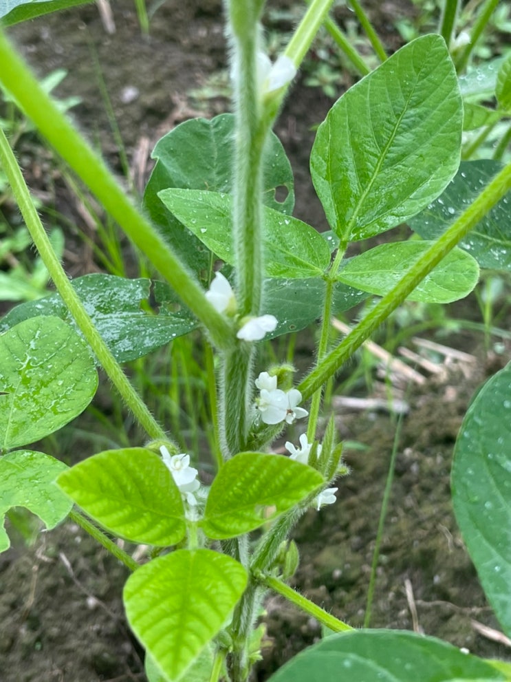 메주콩 꽃 #메주콩꽃피는시기 2025 이번주에도 장마소식이 있는데, 메주콩에 꽃이 피었다. 잘 버텨야 메주...