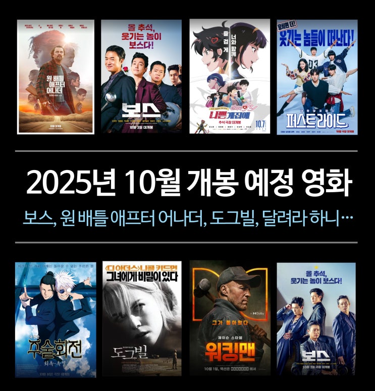 2025년 10월 개봉 예정 영화 정보 - 보스, 원 배틀 애프터 어나더, 달려라 하니, 극장판 주술회전, 퍼스트 라이드
