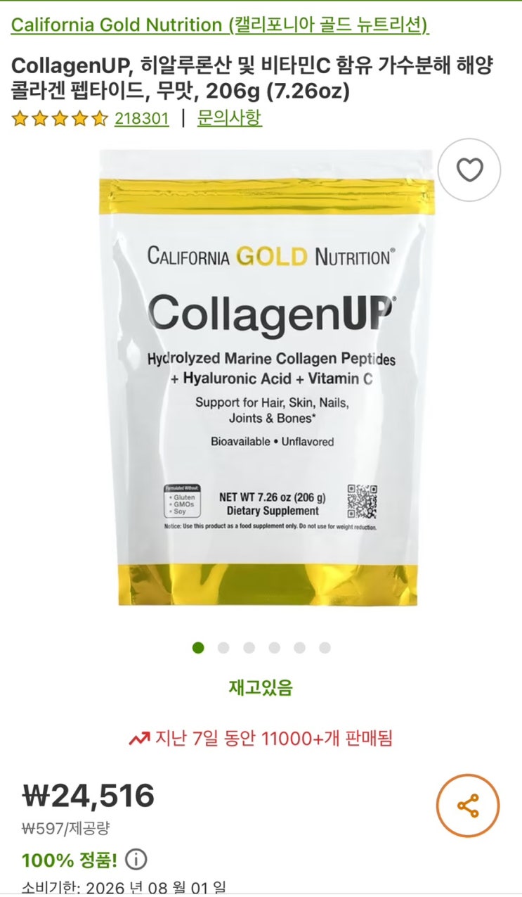 * 콜라겐 탈모방지 * 콜라겐 유형 캘리포니아 골드 뉴트리션 콜라겐 내돈내산 전에 글처럼 영양제 주문하고...