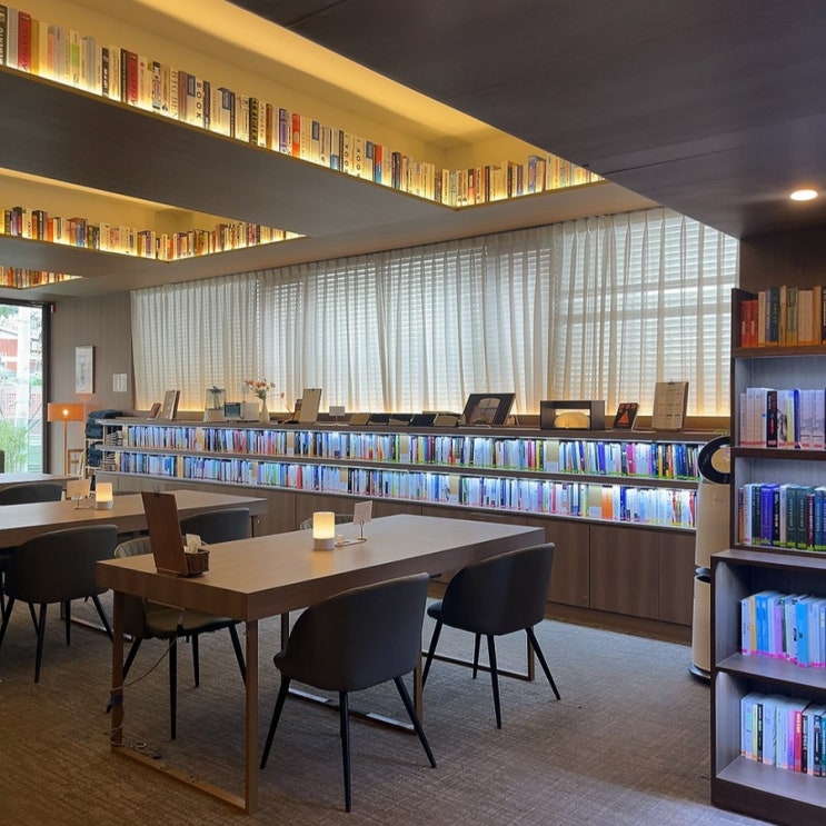 카페꼼마 합정점 반차쓰고 책 읽으러 간 날! 합정과 망원 사이에 있는 대형 북카페~ 건물 외관이 파랑파랑 ...