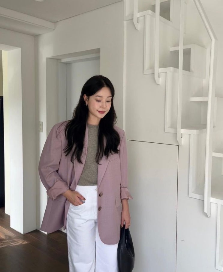 이주미 출근룩 이쁘고 미쳐 필그림 귀걸이 타임 핑크 자켓