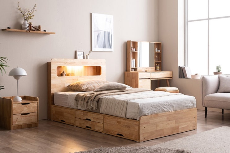 삼익가구 포텐 LED 4단 서랍형 USB 충전 수납 원목 헤드 호텔 침대 프레임 슈퍼싱글 정갈하고 아늑한 공간을 만드는 법