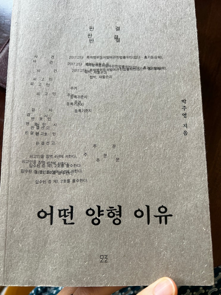 서울에 한 카페에 갔다가 발견한 책, 어떤 양형 이유 tvN<유퀴즈온더블럭>에 나왔던 판사님으로 유...