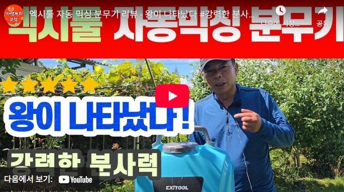 엑시툴 충전식 농약분무기 유튜브 리뷰 순천리빙TV 유튜브 링크 https://youtube.com/@fruit-lab?si...