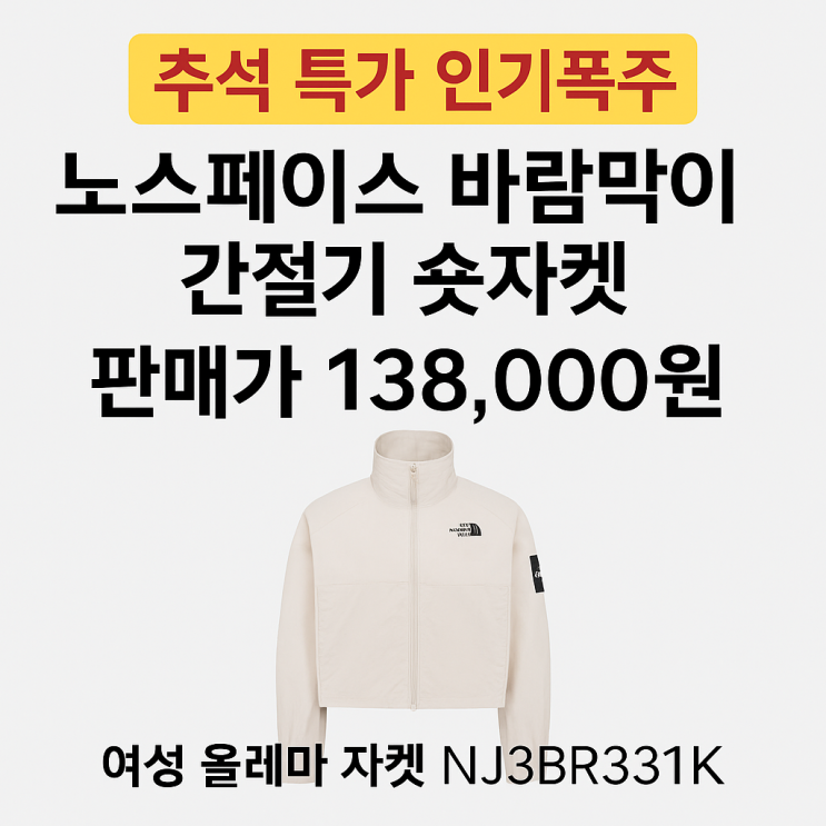 [추석 특가 인기폭주]노스페이스 바람막이 간절기 숏자켓여성 올레마 자켓 NJ3BR31K