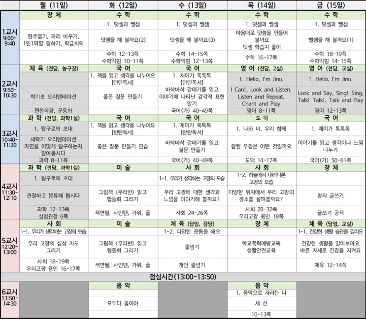 <월요일> 1) 한주열기, 자리 바꾸기, 1인1책임 정하기, 학급회의 - 원래는 첫주에 하는 활동인데 아...