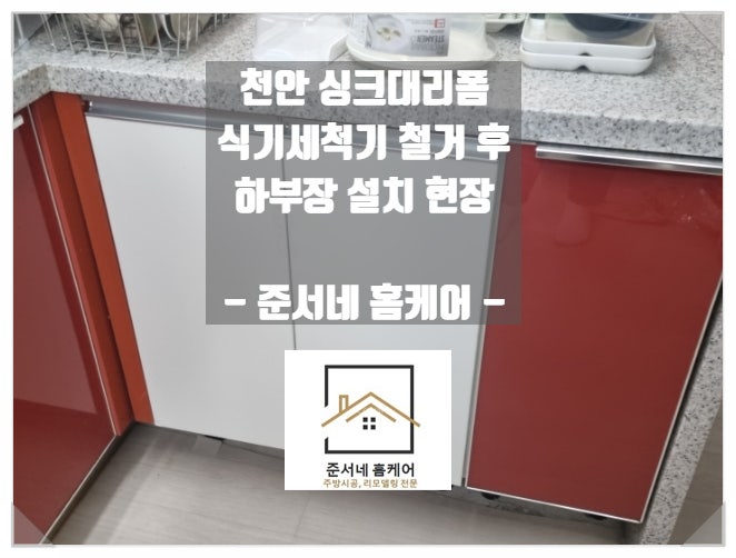 천안 싱크대리폼 식기세척기 철거 후 하부장 설치 현장