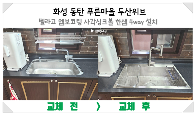 군산 사각싱크볼 교체 이편한세상 특대 엠보코팅 개수대 설치