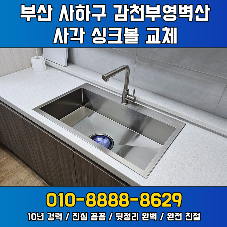 화명동 화명동원로얄듀크 하수구 악취까지 잡은 사각 싱크볼 교체 시공기