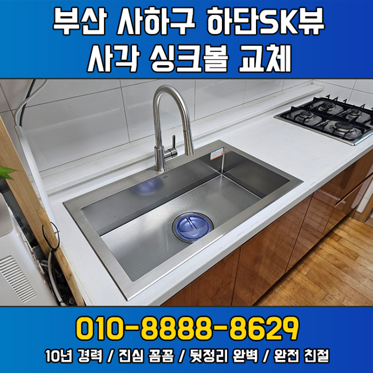 부산 사하구 하단SK뷰 상판 처짐까지 해결한 사각 싱크볼 교체 작업(백조 고니엠보)