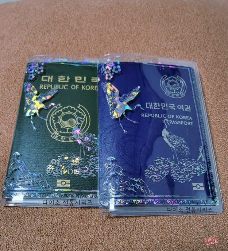 다이소 전통시리즈 여권케이스 구.신 여권 비교 민화대일밴드 돈봉투