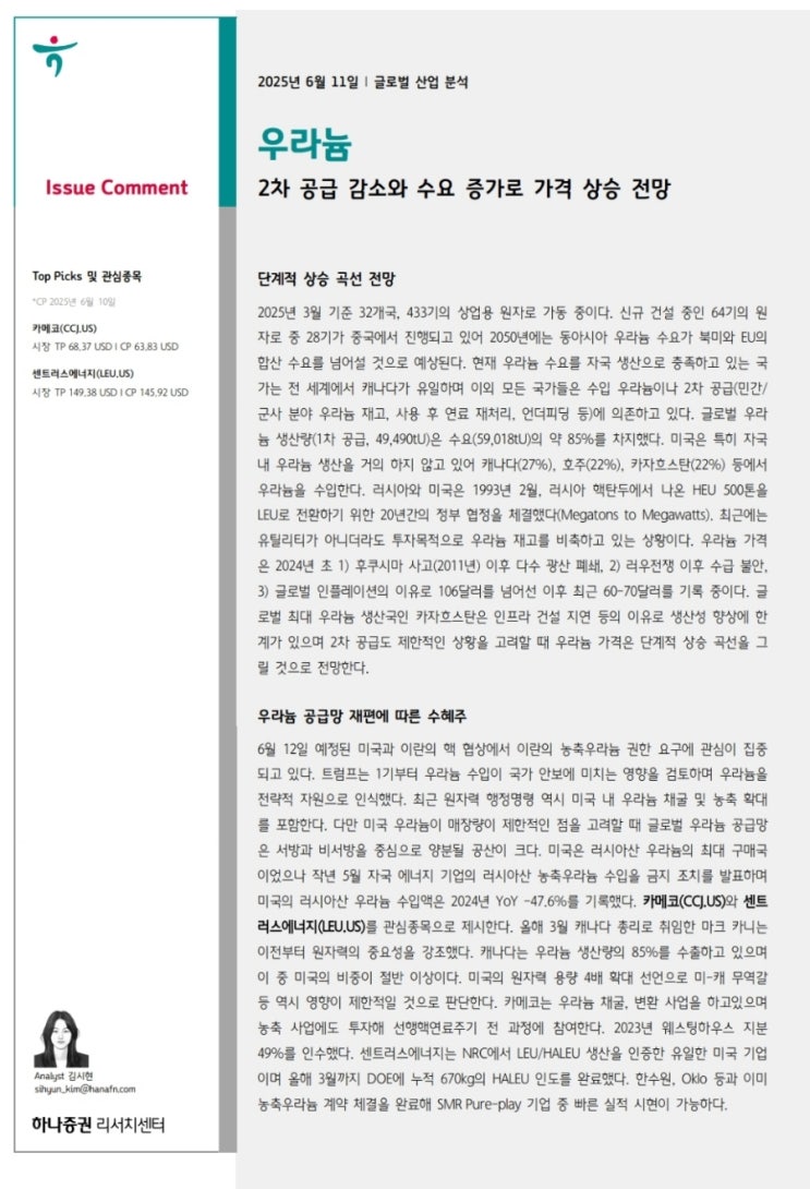 [스터디] 우라늄 시장 전망
