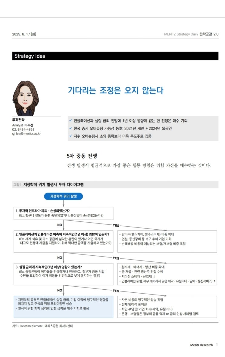 1. 메리츠증권리서치 전략공감 2.0 내용이다. 중동 전쟁이슈 점검 및 국장 상황을 잘 풀이한 내용인데 내용...