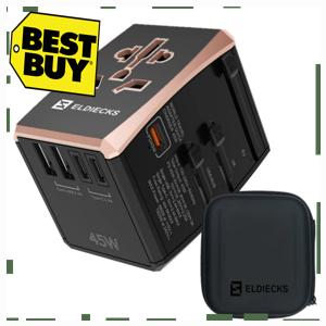 명품 엘디엑크스 5포트 고속충전 PD45W 해외 여행용 멀티 플러그 어댑터, 블랙, 1개 쿠폰적용
