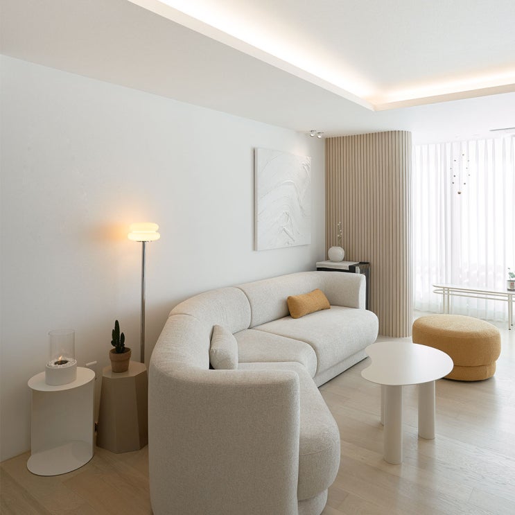 부드러운 배경으로 편안한 휴식을 선물하는 거실 인테리어, 수지 진산마을 삼성5차 아파트