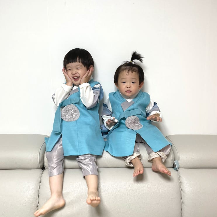 세돌 전 새 한복준비 형아한테 물려받은 개량한복이 있었는데 개량한복은 활동하기 편한대신 어린이집에 입...