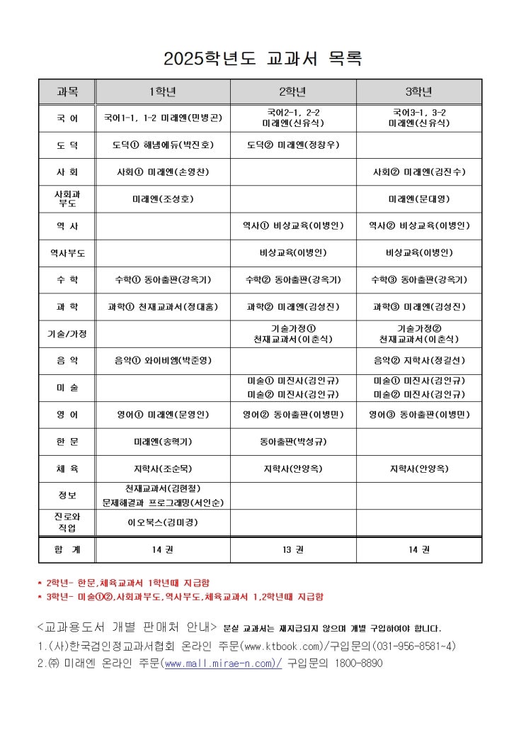 2025학년도 예송중 교과서 목록이 변경되었습니다. 2-3학년과 1학년은 교과서 출판사가 달라요. 도덕/과학/...