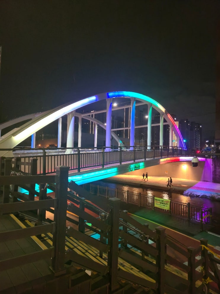 무지갯빛 조명이 다리를 멋드러지게 비추네요 한번에 무지갯빛으로 들어오기도 하고 단색으로 들어오기도 ...