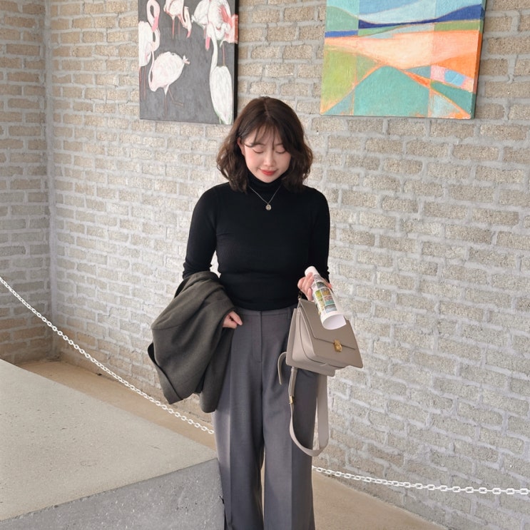 가을데이트 전시회룩 여성니트 코디엔 클래식한 탑텐 메리노울 터틀넥 스웨터