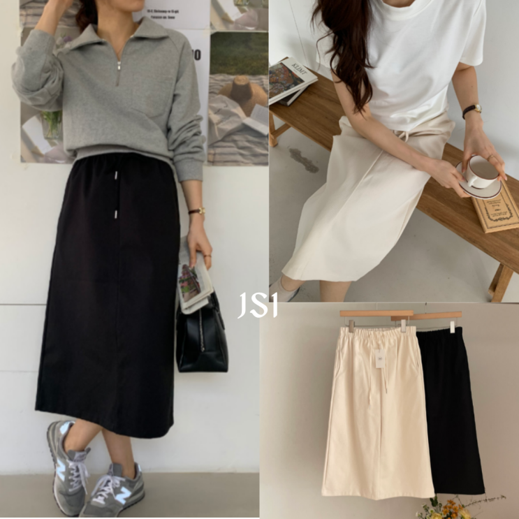 여성 h라인 스커트 미디롱 2기장 빅사이즈 이지핏 밴딩스커트 봄 여름 가을로 멋내기