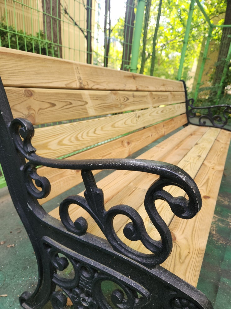 아파트 단지 내 주반 휴식 공간에 있는 벤치들이 오랜 사용으로 인해 목재가 갈라지고 썩어가는 상태였습니...