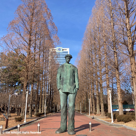 입학할 땐 정문이 없었는데, 1학년 2학기였나, 그때 정문이 생겼다. 차전놀이를 모티브로 한 디자인의 정문...