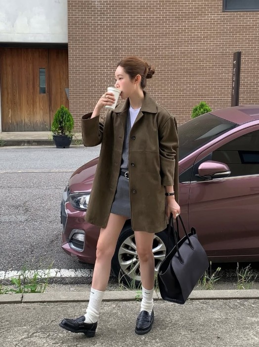 차정원 가을 자켓 스타일링, 조이그라이슨 스웨이드로 완성한 완벽한 오피스룩
