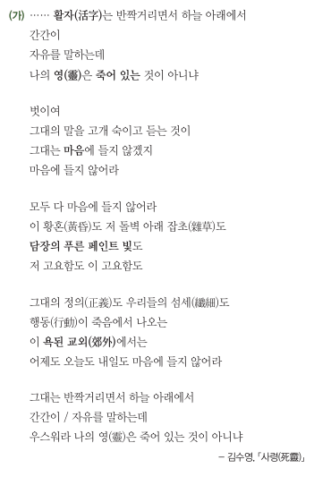 2026 수능완성_ 김수영, 「사령」 * 김수영, 「사령」 해제 자유와 정의가 관념적인 활자로만 존재하는 현...