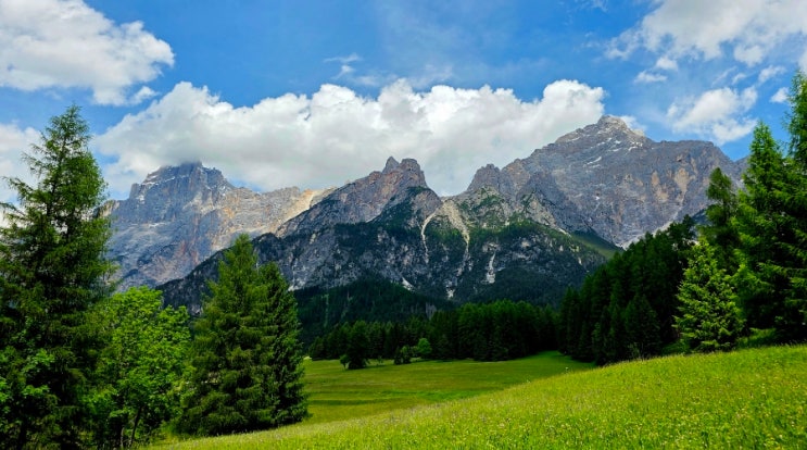 이탈리아 북동부 코르티나 담페초의 돌로미티입니다. 코르티나는 밀라노와 함께 26년 동계올림픽을 개최하...