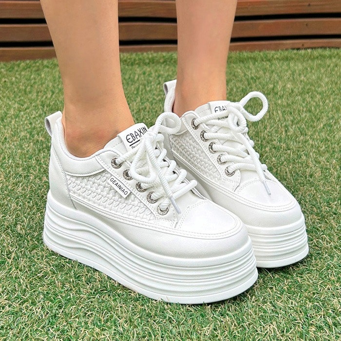 [바닐라슈] 타이너 큐빅 라탄꼬임 키높이 레이스업 스니커즈(7cm)/ 키높이스니커즈,통굽운동화,통굽스니커즈,키높이운동화