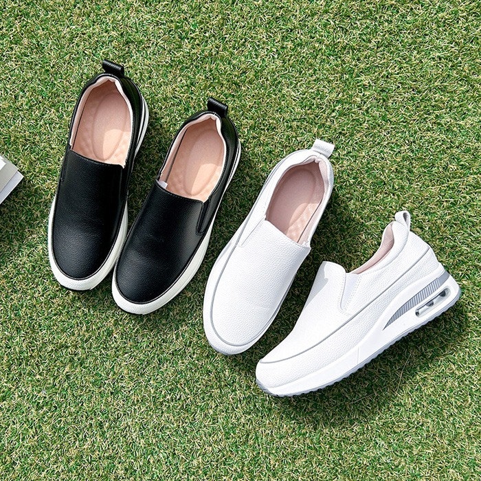 [바닐라슈] 에든리 소가죽 키높이 에어창 슬립온 스니커즈(5cm)/ 슬립온,소가죽스니커즈,소가죽운동화,키높이스니커즈,키높이운동화