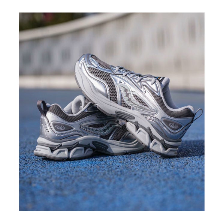 클래식 써코니 그리드 퓨전 메탈릭 실 키높이 스니커즈 고프코어룩