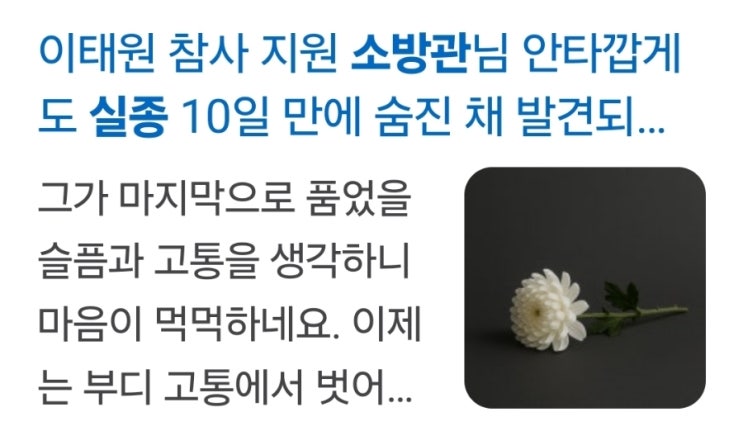 [삼가 고인의 명복을 빕니다] 이태원 참사 출동 소방관, 실종 닷새 만에 숨진 채 발견