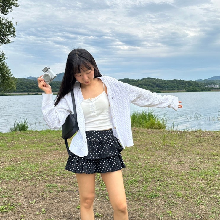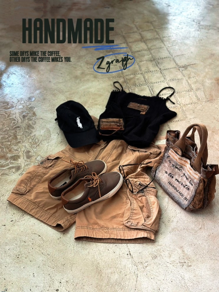 레이스 나시탑 코디, 반전미 넘치는 빈티지 레이어드 카고룩!