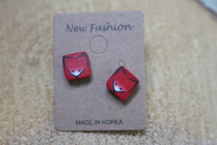clay zoo 만의 여우 패턴으로 귀걸이를 작업해 보았습니다 ^^ 빨강색 펄 클레이를 사용해서 빛의 반사에 따...
