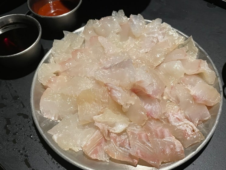 전날 열심히 숙성해서 갖고 온 광어회. 쫄깃쫄깃하게 맛있게 숙성되었다. 아주 뿌듯했음!! ~ 광어 필렛 숙...