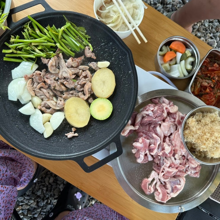 집밥 ♥ 압력솥에 닭한마리 삶아두고 출근 퇴근하고와서 한마리 더 삶아 짜들이팬에 두마리 얹어 부추 팍팍...